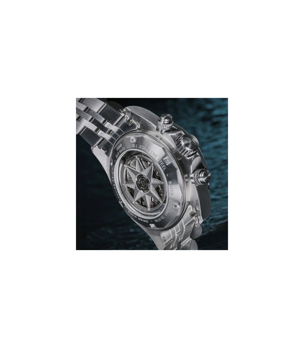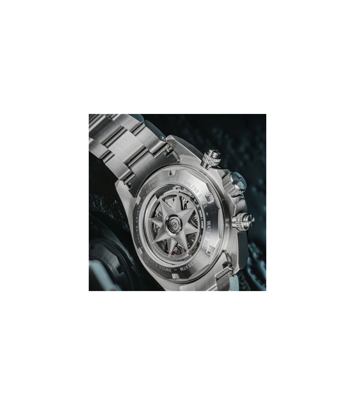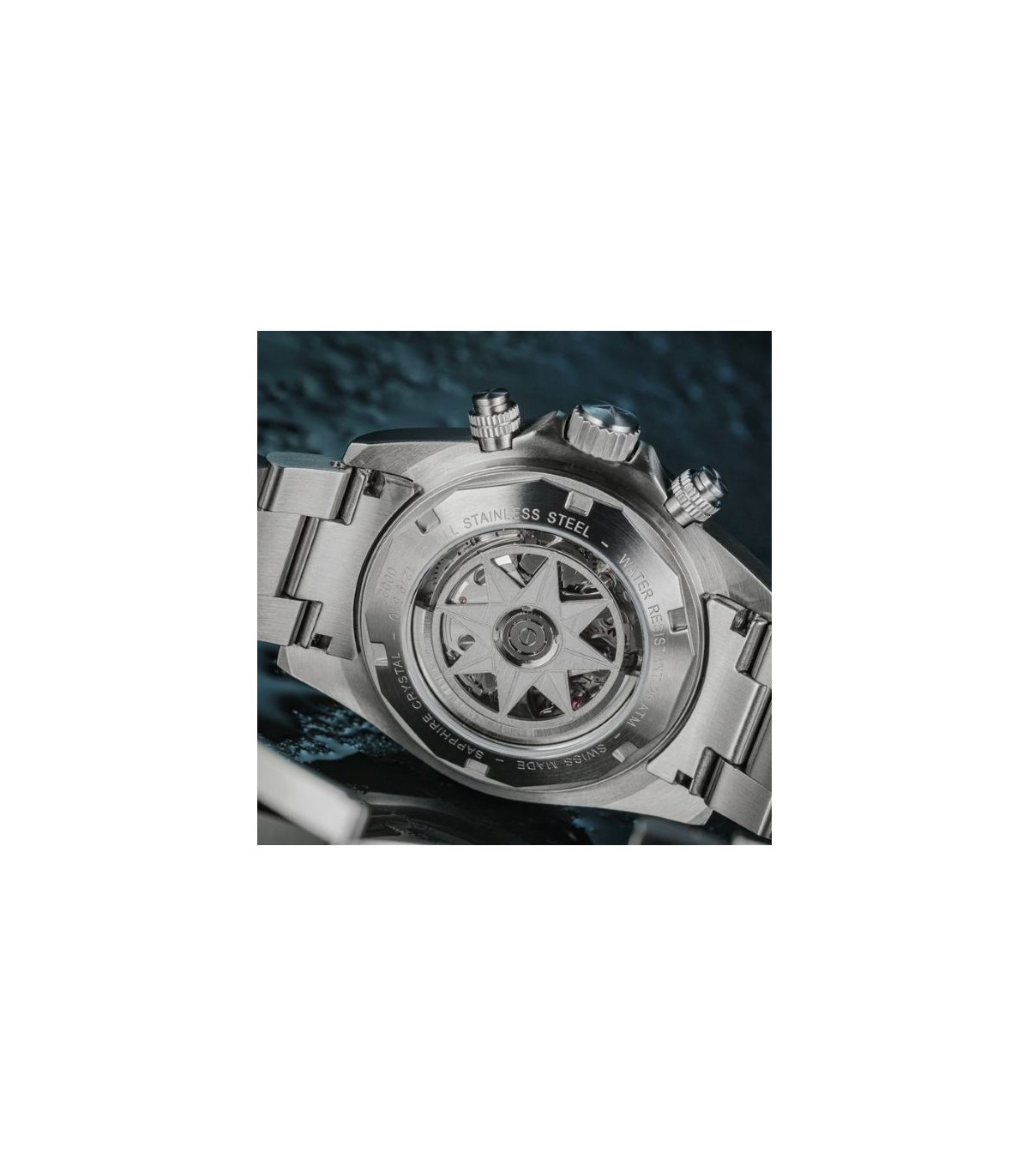 Acier chirurgical 316L, vissé, numéros individuels de série, mouvement visible